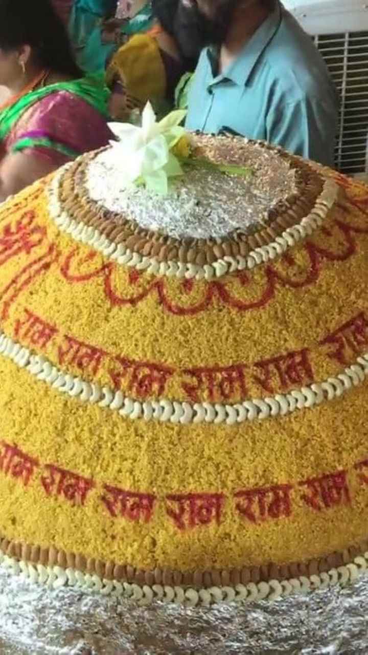 भारी भरकम गोलाकार दिख रही ये चीज ‘लड्डू’ है। भोग के रूप में इस मंदिर में चढ़ाया गया।