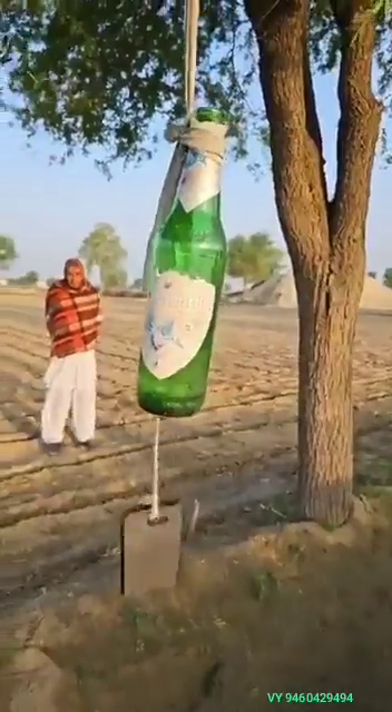 किसान द्वारा बियर के खाली बोतल से आवारा पशुओं को भगाने का जुगाड़ बनाया गया है।