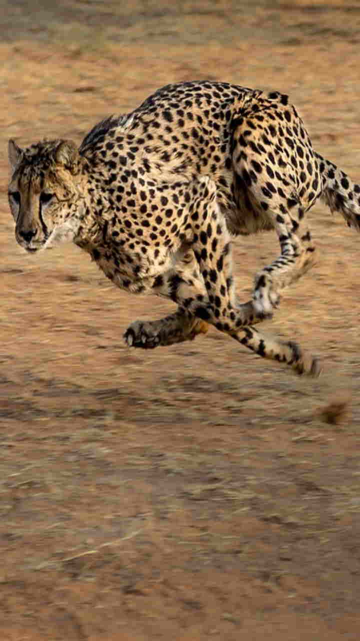 चीते दुनिया के सबसे तेज दौड़ने वाले जीव हैं। इनकी अधिकतम रफ्तार 120 KMPH है।